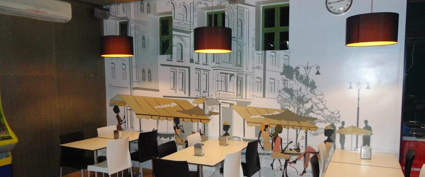 El Gran Vía alberga un bar con terraza y una cafetería, donde todos los días se sirven desayunos y se preparan platos caseros y de temporada. El desayuno incluye café, zumo de naranja recién exprimido y tostadas o una selección de bollería con mermelada.