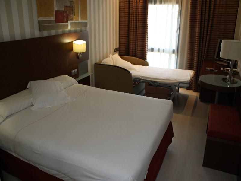 Unicamente que el tamaño de la habitación si se incluye cama supletoria puede quedarse un pelín justo. Fantastico. Mucho mejor de lo que su precio puede hacer pensar. Nos alojamos mi mujer, mi hija de tres años y yo en una habitación triple y otra pareja en una habitación doble. La habitación estaba muy limpia, con climatización individual, caja de seguridad y minibar gratuitos. El baño tenía plato de ducha grande y amenities como maquinilla de afeitar y espuma, esponja, gel de ducha, etc. Amplio horario de desayuno, hasta las 11. El buffet tenia pan de molde, blanco, croisants, cereales, cafe, zumo, embutido, fruta fria, mermeladas, etc. El parking cuesta 8 euros y es subterráneo pero hay sitio de sobra en las calles de alrededor. Estás a 15 min de la Warner y es muy fácil llegar. De todos los hoteles en los que hemos estados en esa zona para ir a la Warner este nos parece el mejor en relación calidad-precio. La habitación triple más la doble con desayuno por soo 103 euros está genial