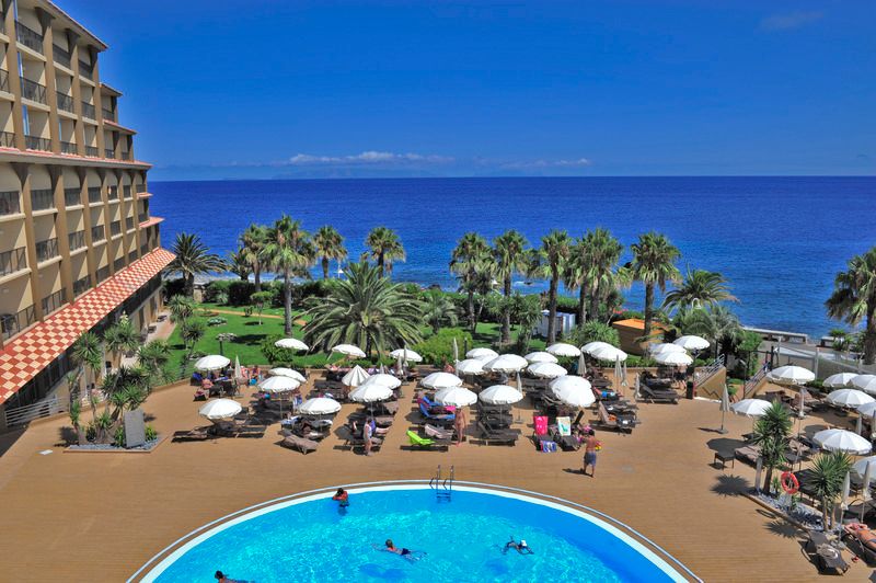 Este hotel está situado enfrente de una preciosa playa rocosa, en una tranquila zona de Caniço de Baixo. A una distancia de tres kilómetros, aproximadamente, está el centro de la ciudad. En los alrededores encontrará una gran cantidad de tiendas y comercios, así como bares, restaurantes y servicio de transporte público.Este hotel tiene ocho plantas y dispone de un total de 224 habitaciones, de las cuales 170 son dobles, 26 son suites y 28 son apartamentos. El edificio cuenta con un hall de entrada con ascensor y un área de recepción abierta las 24 horas del día que le ofrece servicio de caja fuerte y de cambio de divisa. Dispone también de algunas tiendas, una peluquería, una cafetería, un quiosco, un bar, una sala de juegos, una sala de televisión y un restaurante a la carta, climatizado y con sillas altas para los niños. A su disposición tendrá una sala de conferencias, una terminal de Internet, un sótano para guardar las bicicletas, servicio de alquiler de las mismas y un parque infantil. Podrá aparcar su vehículo en el aparcamiento o en el garaje del propio hotel. Para completar todas estas prestaciones, también se le ofrece de servicio de habitaciones, de lavandería y de atención médica.Las confortables habitaciones disponen de baño con secador de pelo, teléfono de línea directa, TV vía satélite o por cable, radio, conexión a Internet, minibar, nevera, calefacción central y caja fuerte de alquiler.El hotel pone a disposición de los huéspedes una piscina, otra piscina de agua salada, una piscina cubierta, tumbonas y sombrillas, una sauna y servicio de masajes (con cargo adicional). Los que quieran realizar algo de ejercicio tendrán la posibilidad de de jugar al tenis, al ping-pong y al billar o de utilizar el gimnasio. El hotel le ofrece con regularidad un programa de actividades para su entretenimiento. El campo de golf más cercano se encuentra a 12 kilómetros.