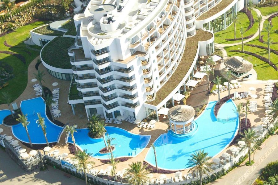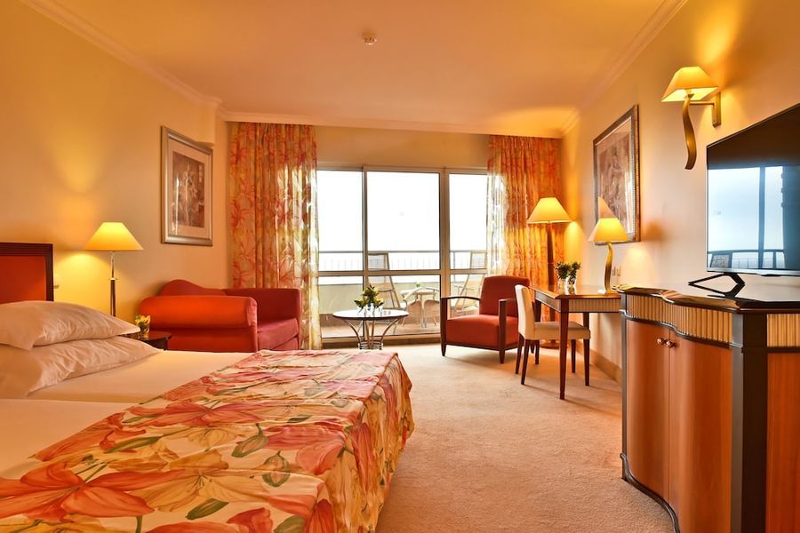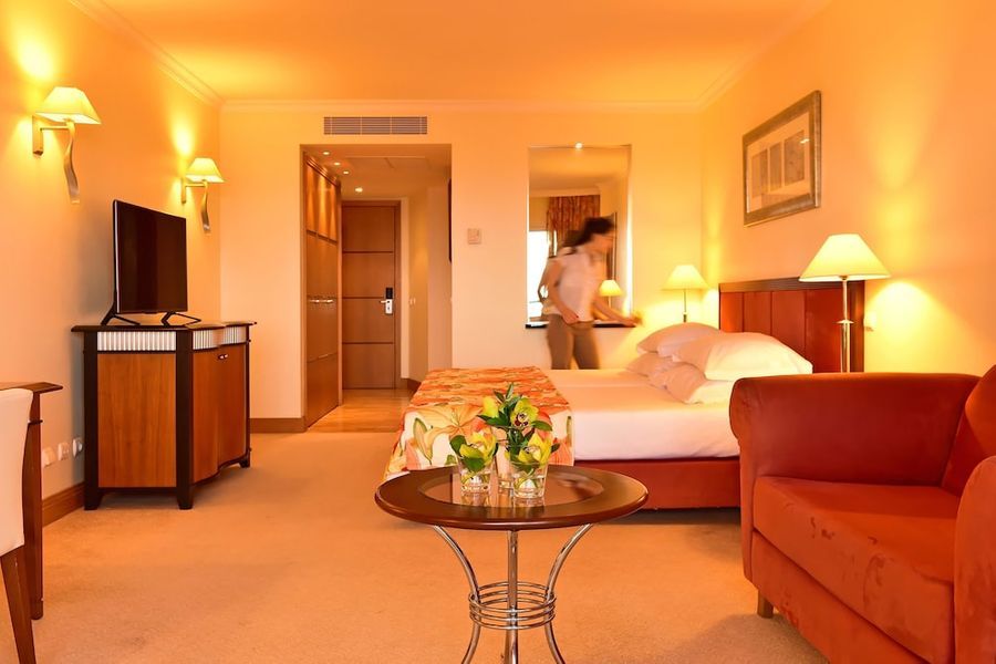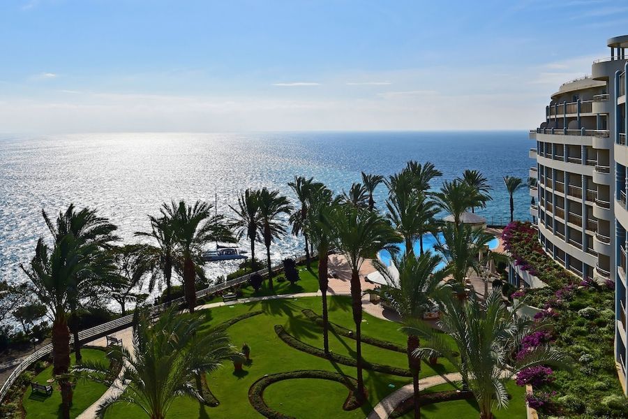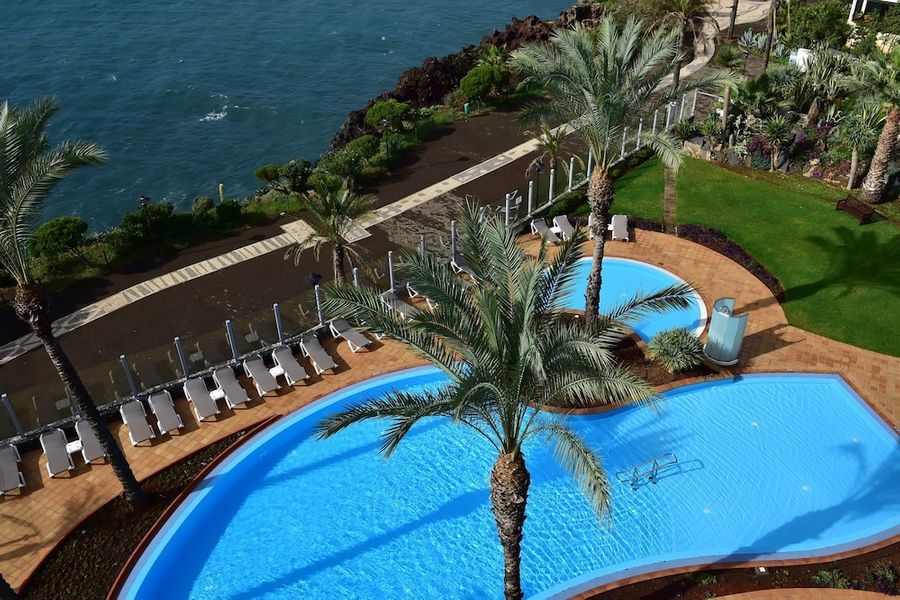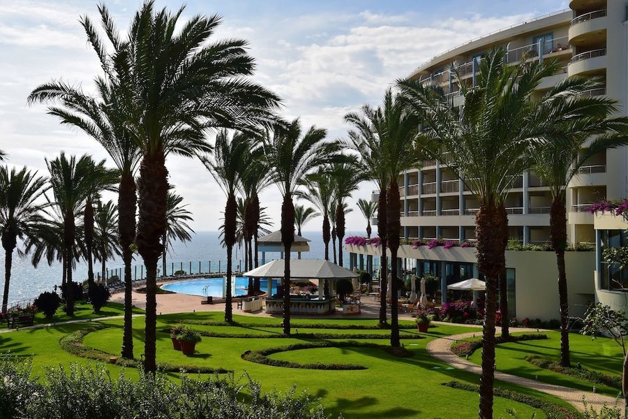 Este hotel de lujo se está a solamente 200 metros de la playa. Se encuentra a las afueras de Funchal y sobre el acantilado de Ponta da Cruz, desde donde disfrutará de unas vistas maravillosas. El centro se encuentra a tres kilómetros. En las inmediaciones, a unos 50 metros, tiene servicio de transporte público y a 100 metros tiendas, comercios y restaurantes. Llegará al aeropuerto tras 35 minutos en coche.Este lujoso hotel, inaugurado en el año 2004, está ubicado dentro de un jardín subtropical de 5.000 m² de superficie y tiene cuatro plantas en las que se reparten un total de 193 habitaciones, 11 de ellas suites. Cuenta con un hall de entrada con ascensor y un área de recepción abierta las 24 horas del día que le ofrece servicio de caja fuerte y de cambio de divisa. A disposición de los huéspedes hay también una peluquería, un quiosco, una sala de juegos, dos bares, una sala de televisión, cuatro restaurantes climatizados (con tronas para los niños disponibles), una sala de conferencias y una terminal de Internet (con conexión inalámbrica). Para completar el número de prestaciones que se le ofrecen, tendrá a su disposición servicio de habitaciones, de lavandería y de atención médica. No se tendrá que preocupar por su vehículo ya que el hotel cuenta con aparcamiento y garaje.Las lujosas y elegantes habitaciones disponen de baño propio con secador de pelo, además de teléfono de línea directa, TV vía satélite o por cable, radio, conexión a Internet, minibar, moqueta, aire acondicionado, calefacción central, caja fuerte de alquiler y balcón. Las suites también cuentan con un salón aparte y dos balcones.