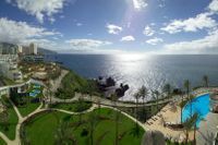 Este complejo está perfectamente situado en la zona turística de Funchal, a 5 minutos del centro y a una corta distancia a pie de restaurantes, bares, supermercados y centros comerciales. Este establecimiento ofrece a sus clientes un acceso directo y privado a la playa y comprende dos edificios de diseño contemporáneo que permiten la entrada de luz natural en el interior. Las 300 habitaciones dobles incluyen balcones privados con vistas a los jardines o al mar y han sido elegantemente decoradas. Este bonito establecimiento está rodeado por exuberantes jardines que crean una atmósfera relajante. Los clientes podrán ejercitarse en el centro de fitness, completamente equipado, o darse un chapuzón refrescante en alguna de las dos piscinas de agua salada tipo infinity y con vistas al Atlántico. El complejo hace gala del concepto Dine Around, que permite a los huéspedes elegir alguna opción de la media pensión en los cinco restaurantes, donde encontrarán una gran selección de especialidades locales e internacionales.
