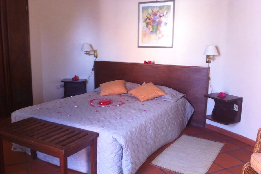 El complejo turístico se encuentra en la localidad de São Jorge, a unos 50 km al noroeste de Funchal. Se trata de una zona tranquila con unos alrededores idílicos, por lo que pasará una estancia muy agradable. Las casas, que descienden la colina mediante terrazas hasta el agua clara del Atlántico, están distribuidas por los campos verdes. La humedad del invierno hace que la colina de São Jorge permanezca verde todo el año, paisaje de contrastes debido a los árboles frutales, campos de maíz y boniatos, así como de cítricos. En 10 minutos en coche llegará al centro de Santa y a un parque de atracciones. Machico está a 37 km y el aeropuerto de Madeira se encuentra a 40 km.El complejo se ha renovado recientemente y está rodeado por un jardín, con 25 bungalows y 10 habitaciones dobles, situadas en tradicionales rotondas y que le ofrecen el confort más moderno. En el acogedor hall de entrada hay un área de recepción abierta las 24 horas del día con servicio de caja fuerte. Además, tiene a su disposición una cafetería, un quiosco, una tienda artesanal, una sala de televisión, un restaurante con capacidad para 120 personas, tronas y una gran selección de platos y aperitivos, así como un comedor. También se puede relajar en la sala de billar con un vaso de madeira o en la chimenea del recibidor. Abonando un cargo extra puede utilizar el servicio de lavandería. Hay un garaje disponible.Tanto los bungalows como las habitaciones dobles disponen de vistas al mar y disponen de una arquitectura exótica y harmónica. Todas las viviendas están equipadas con cuarto de baño, toallero eléctrico, secador de pelo, teléfono de línea directa, TV vía satélite o por cable y calefacción central.